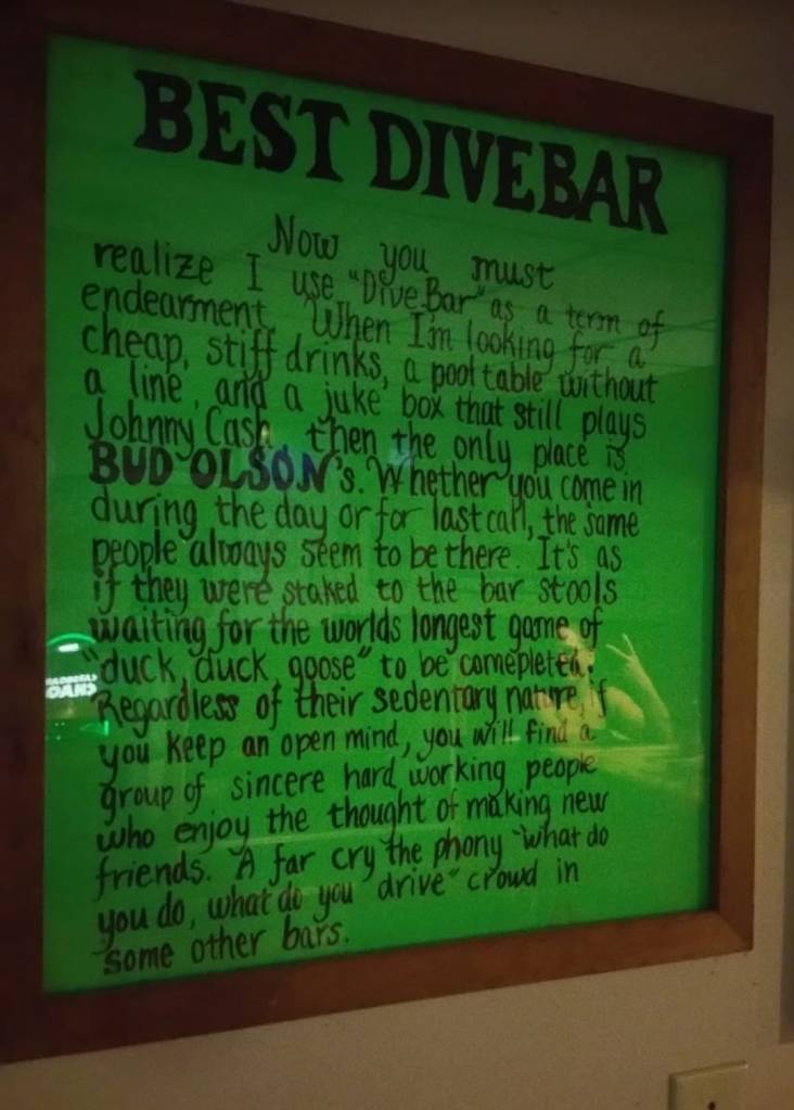 Even though Bud passed away in 2010, the bar remained in good hands. Thrillist even named it as one of America’s Best Dive Bars in 2018. Clearly, the Olson family agreed as a homemade sign proclaimed it as such due to its “cheap, stiff drinks, pool table without a line, and a jukebox that still plays Johnny Cash”. Bud Olson which poured its last drinks on Halloween 2019 is remembered as more than just a bar but a neighborhood institution where neighbors gathered to discuss life and current events.