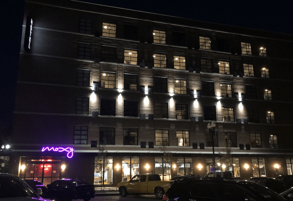 Today, the site is home to the six-story, 105-room Moxy Hotel. Its brick façade allows it to blend reasonably well with the historic Old Market buildings that surround it. The Marriott-owned hotel offers compact guest rooms with an emphasis on communal spaces, along with a fitness center and restaurant.