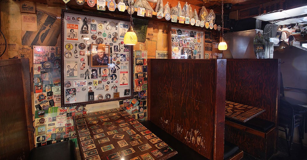 The bars claim to fame is both its champagne on tap and its decor with walls covered with newspapers dating back as far as 1910. Peruse them and you’ll come across events such as the sinking of the Titanic, the Hindenburg explosion and Amelia Earhart’s disappearance. Another wall features dozens of old beer cans. Look up at the ceiling and you’ll find old restaurant menus donated by a former Miss Omaha who received five years of champagne in exchange. The vintage appeal inside the Homy doesn’t stop there and extends to the beer trays obtained from flea markets, antique shops and another from Dublin as well as baseball cards, tap handles, Beatles and Elvis memorabilia and a collection of Jim Beam bottles aid to be the largest in the state at the time.