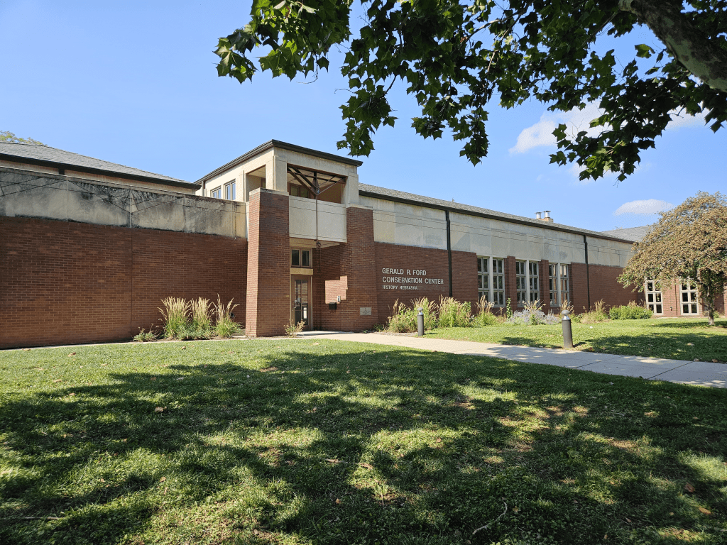 The mansion on Woolworth was listed for sale in 1939 and eventually split into 10 apartments by 1940. It’s likely the house would have become a national landmark had it not caught on fire in 1971. The fire resulted in the death of Helen Glade who had escaped a house fire elsewhere just months earlier. The house was razed and the lot listed for sale not long afterwards. It wasn’t until 1973 that it was discovered that it was the first home of then-Vice President Ford. By this time, however, the vacant lot was overgrown with weeds and full of trash.