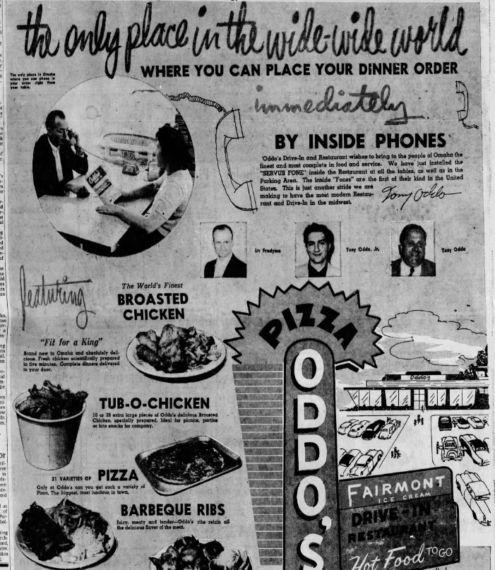 Tony achieved his dream in 1956 when he opened Oddo’s Drive-In at 2410 S 13th St. His sandwiches were known for the unique names including the Pookie Snackenberger and the Mo-She-Fro. Likely the hero of local football players, he would give away pookie burgers to anybody that scored a touchdown. Gale Sayers is said to have eaten so many when he played for Central that his teammates named him Pookie. He claims that his restaurant was the first to allow customers to call-in orders from their tables or the parking lot.