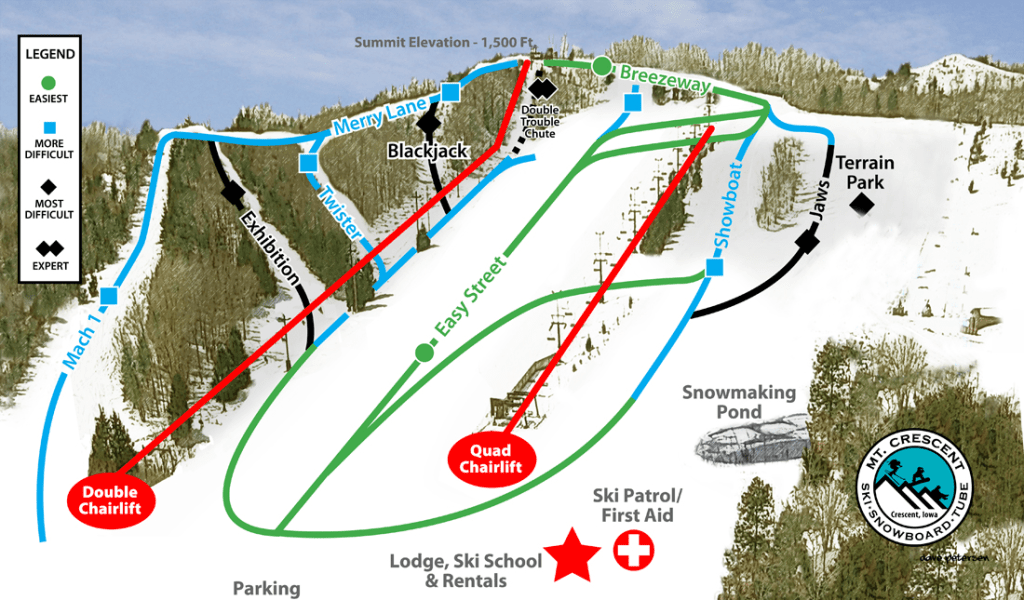 Upon returning home, the trio began studying topographical maps in addition to flying over the bluffs between Plattsmouth and Missouri Valley to find a suitable location to open a ski area. They also received guidance from Stein Eriksen, an Olympic gold medal skier from Norway. The perfect location just happened to be two miles north of Crescent in Iowa’s Loess Hills.