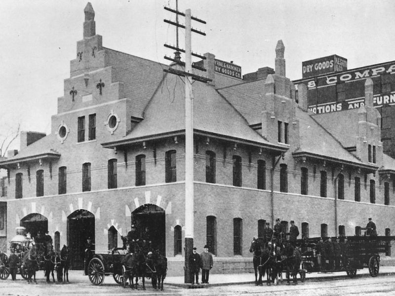 The garage doors were located on the south side of the building allowing the horses, fire wagons and firefighters to come and go. Inside the building on the ground floor were the horse stables and stalls. The second floor served as the sleeping quarters and recreational area for the firefighters. The third floor was the hayloft for the horses. After the third floor was ironically destroyed by a fire in 1917, it was removed and never rebuilt. Even so, the building in the old City Market continued to serve as a fire station until 1944. After the start of World War II, however, the city couldn’t find sufficient manpower to operate the fire station causing it to close down.