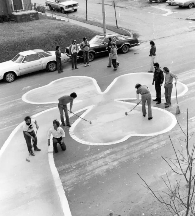 Perhaps the most notable thing about Marylebone started in 1978 when a large shamrock was first painted in front of the building on Leavenworth. Technically against the law, the city looked the other way as the paint usally wears away quickly under heavy traffic. While in years past, the police would put up barricades and direct traffic while the painting was underway, they refused to do so in 1983 causing one of the painters to be struck by a car. Fortunately, the injury was minor. The Marylebone raised money to defray the medical expenses of one its regulars.