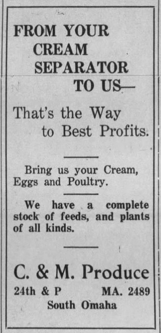 The population explosion and streetcar helped 24th Street which was originally known as Bellevue Ave to become the center of commercial development in South Omaha. This includes the subject of this photograph, C & M Produce, which was located at the SE corner of 24th and P St, just one block south of the area between M and O Streets that were added to the National Register Historic Places in 1988.