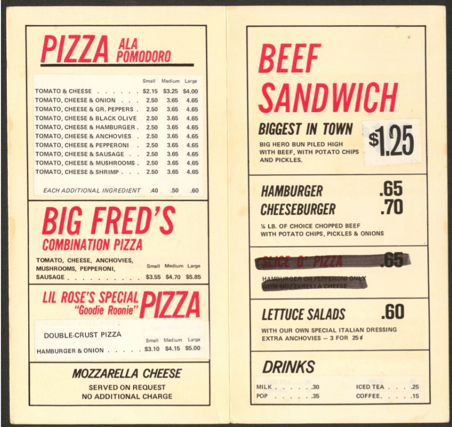Sitting in his usual spot at the end of the bar while chatting up customers, “Big” Fred was the face of the restaurant. “Lil” Rose, however, was the driving force behind it. She did much of the work of making sure the restaurant ran smoothly in addition to making the food. The recipes for the pizza dough, sauce and spaghetti came from her family. The pizza for which it became known was thin crusted and loaded with sauce and toppings before being topped with romano cheese. Eventually mozzarella replaced romano as a result of customer requests. Rose also introduced her popular double crust pizza they called Goodie Roonie. The restaurant was so popular that they even opened a second location near 108th and Mockingbird for a time.