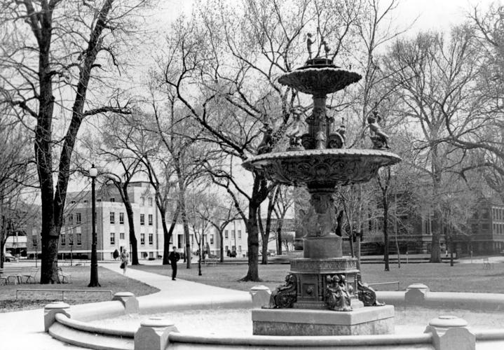 1940s Historical Society of Pottawattamie County photograph of the original old Rusty fountain in Bayliss Park.