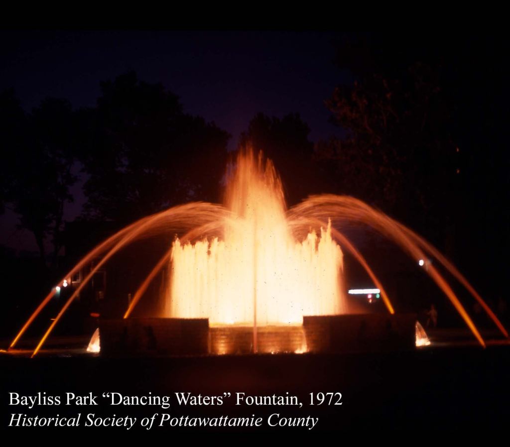 1972 Historical Society of Pottawattamie County photograph of Dancing Waters fountain in Bayliss Park.