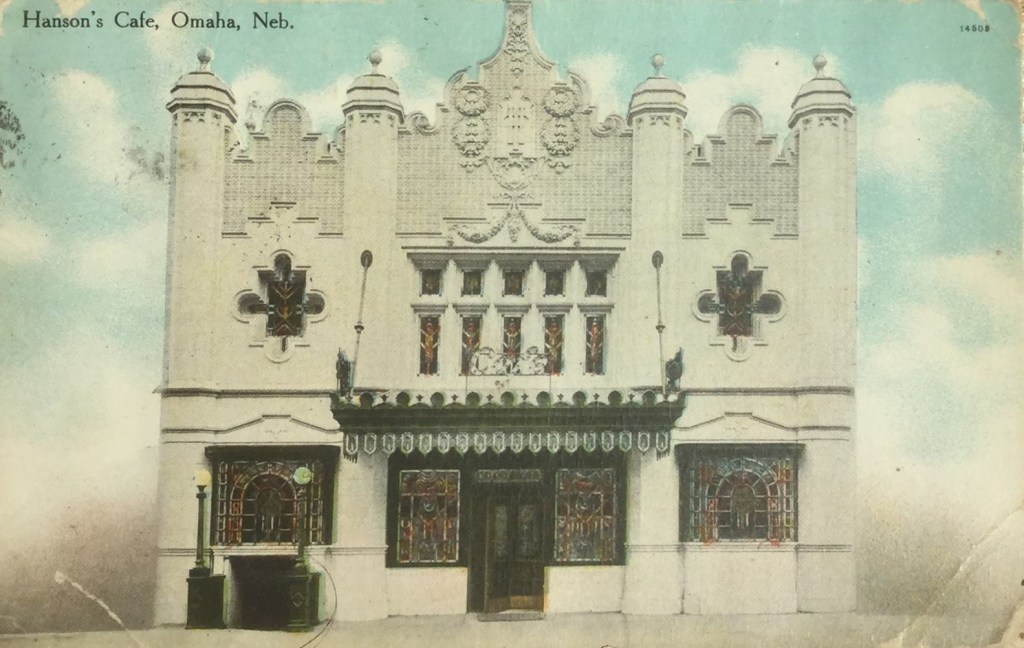 Built in 1880, the building at 315 S 16th St had been the home to the Columbus Buggy Company followed by C. W. Baker Undertaker and finally G. E. Harket Furs before Tolf Hanson bought it to open Cafe Beautiful. Tolf had owned the popular Calumet Cafe so he set his sights even higher this time around and was determined to make it the finest restaurant in town. He spared no expense and ultimately spent $175k to not only update the kitchen and to furnish the restaurant but also on extensive building modifications completed by contractor John Harte. When it was finished, the facade of the building was in a Spanish renaissance style with Flemish Gothic moldings even though much of the original brick and mortar remains under and around the building to this day.