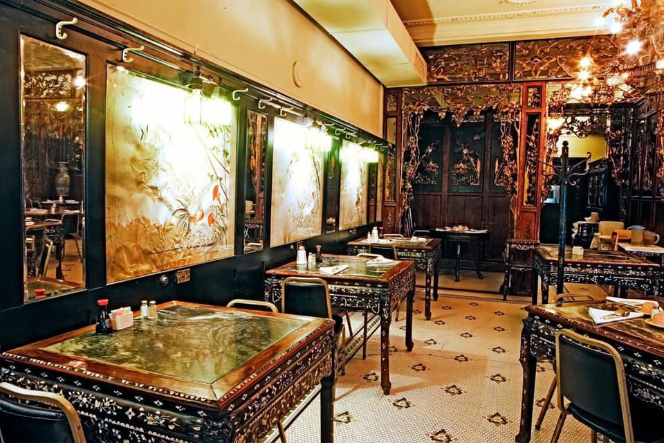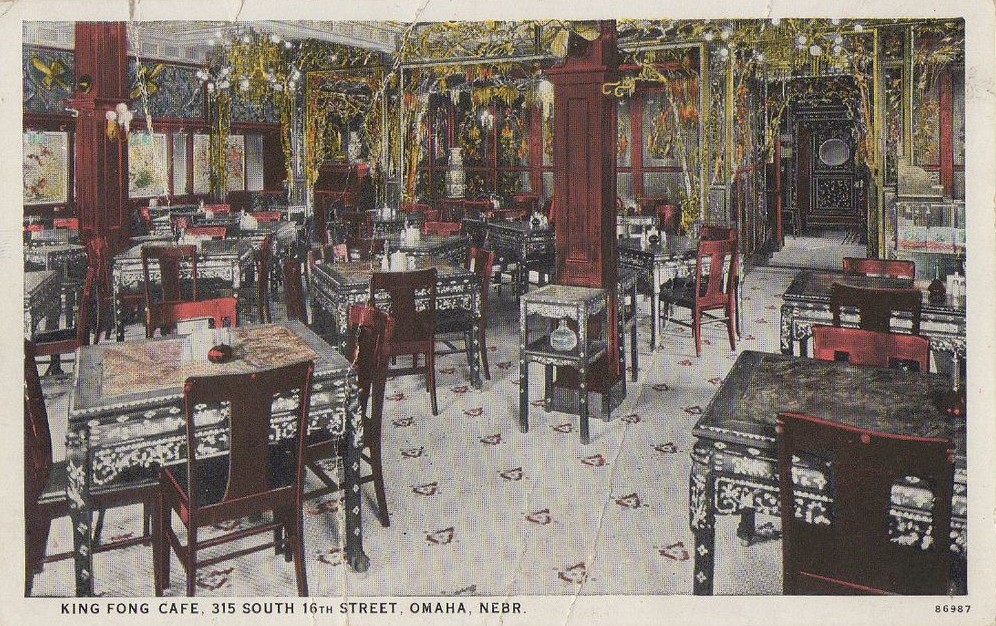 To furnish the new restaurant, Gin borrowed money from Omaha National Bank and traveled to Hong Kong. He brought ornate hand carved chandeliers that told a story of a Chinese opera in addition intricate woodwork, hand carved teak tables, chairs inlaid with mother-of-pearl, silk embroideries that he used to line the walls, detailed carvings along and ornate tile floors. He added the third floor where he installed enclosed booths for privacy. In total he spent $50k decorating the restaurant. He retained the Tiffany glass windows and the marble staircase that were installed by Tolf in 1908. When he opened the doors to King Fong Cafe in 1920, it was like nothing like most citizens of Omaha had ever seen. The restaurant and its extravagant interior and Cantonese cuisine proved so popular that he was able to pay the loan back in less than a year.