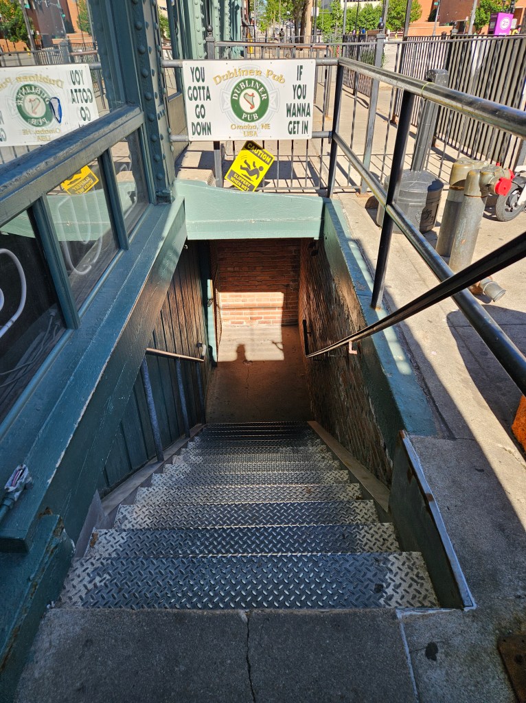 In 1982 Paul was convinced to change its name to the one we recognize today, Dubliner Pub. After hearing that customers would often walk five or six blocks to find the pub, he installed a neon sign with a blinking green arrow above the steps leading to its entrance. This resulted in a dispute with the city which stated that due to its landmark status, he could not alter the building without permission from the city. After removing the sign which was said to have been out of character with the building, he attempted to rescind its landmark status only to have the request be denied. Though he favored the preservation of old buildings he said that he was not aware of the restrictions and feared it would prevent planned renovations although he did succeed in adding stairs that led from its location below grade up to the sidewalk.