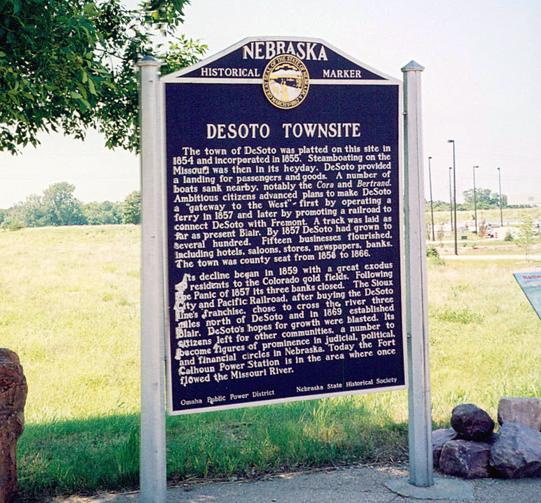 It is located near the DeSoto River Bend which is named after Spanish explorer Hernando de Soto. The town of the same name once served as a key transportation destination along the river in the mid-19th century.