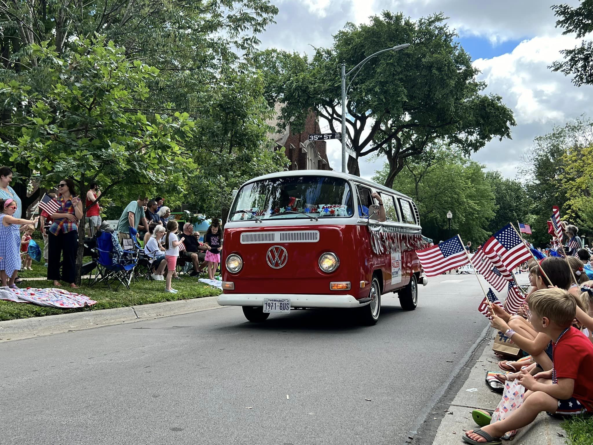 The parade consists of homemade floats, hot dogs, cookies, dogs, fire trucks, classic cars, VFW Post 247, bicycles, politicians and lots of nostalgia. There’s even patriotic artwork painted on the street in the heart of the neighborhood at the intersection of 35th and Woolworth Ave. The parade definitely has a small town feel. Check it out next year if you get a chance.