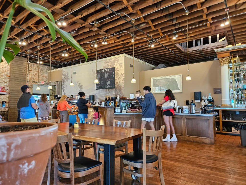 Before moving into the Art Deco building on 31st and Leavenworth, The Mill Coffee & Tea opened five locations in Lincoln. Its first was in 1975 in a bike shop. They opened the Omaha location nearly 50 years later in 2023. In order to do so, they essentially gutted the interior to create a warm and cozy atmosphere in the 4,500 sq ft space. The owners did the design work. After delays, they opened with the intent of serving as a gathering place for the community. The space has 136 seats inside and 60 more on the patio. In addition to coffee and tea, The Mill has a full cocktail bar allowing it to stay open into the evening.