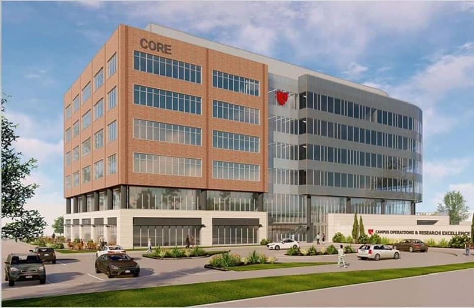 The rendering shows what the 6-story CORE building will look like. It will serve as the cornerstone of the new campus and will be ideal for research that leads to product and drug collaboration and innovation.