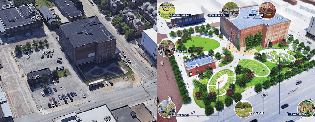 A new park called the Polina Gardens is underway at the intersection of 13th and Jones Street. The park will extend one block east to 12th and one block south to Leavenworth. It will incorporate two historic buildings including the Anheuser-Busch Depot and McCord-Brady building.