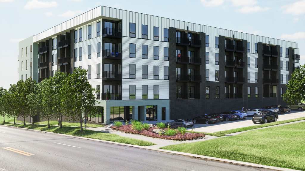 The five story, 136 unit market rate apartment complex currently under construction will include a courtyard, community room, fitness room and a rooftop deck with pool. It also includes 88 underground parking spaces. It is expected to open in the fall of 2024.