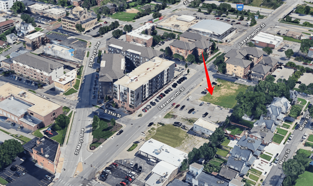 A 73-unit apartment complex called the Square is in the process of being constructed beteween 30th and 31st and Leavenworth Streets. Located on the south side of Leavenworth across from the Triangle apartments. In the recent past, the site just east of Fashion Cleaners was home to Novedades Veronica, Grinn & Barrett and two old houses that were split into apartments.