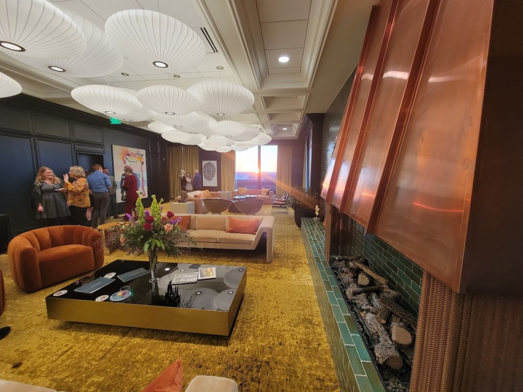 The top floor of the building, The Cloud Room, serves as an exclusive space for tenants and their guests offering panoramic views across the city.