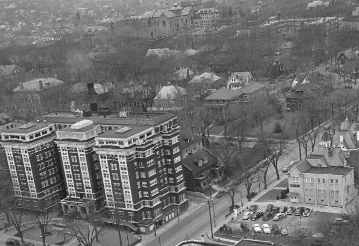 At the southwest corner 37th and Farnam rises a nine story apartment complex. It sits west of the Cottonwood Hotel. The new structure replaces a surface parking lot and a century old house turned apartment. Once considered a part of the Gold Coast, large mansions once lined Farnam Street. The only one that remains is the Storz Mansion at 3708 Farnam across the street from the 37 West Farnam Apartment structure.