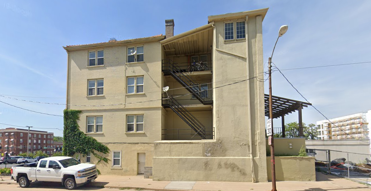 The old apartment complex that was razed to make way for the massive new structure. This was the remaining section of what was once a larger building that can be seen in the picture below.