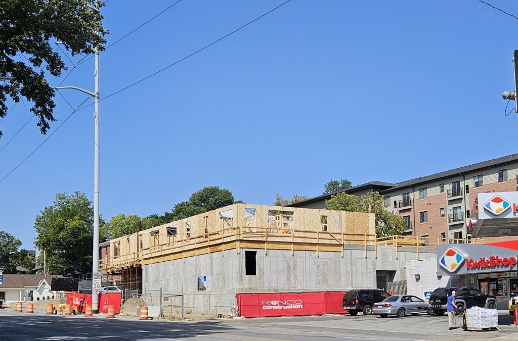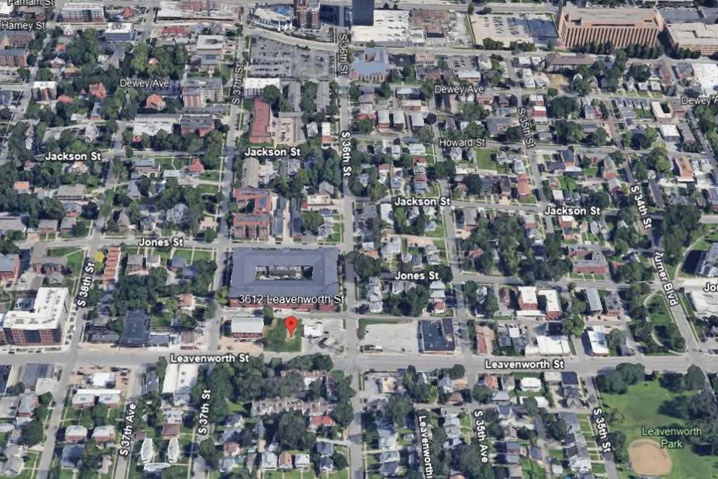 The 28-unit Leavenworth Lofts apartment building is being constructed at 3612 Leavenworth Street. Two houses used sit on the site between the Kwik Shop on the east and Fernshire Plaza building on the west. The site has been an empty lot since at least 2015.