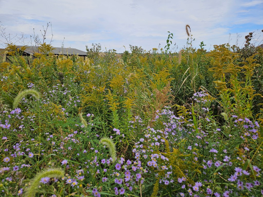 By 1970 the area was reseeded to a prairie consisting of five different species of native grasses and other prairie plants. The goal was to preserve a piece of the tallgrass prairie and allow more space for insects and wildlife to find a refuge and survive within the metropolitan area. The area was also used for prairie research by students of all ages as well as the Boy Scouts and the Audubon Society. Starting in 1974 the prairie has been maintained with prescribed burning. Each year a third of the prairie is burned in the spring which is believed to mirror the pre-settlement burn frequency of the tallgrass prairie in the area.