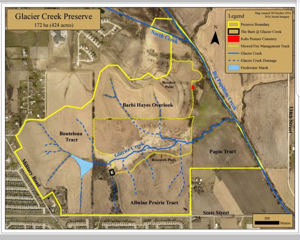 After additional land acquisition the Glacier Creek Preserve now consists of 525 acres and includes the entire watershed. It’s also open to the public from March 1st thru December 21st from 9 AM to 4 PM and provides people to experience what the settlers experienced firsthand. From the awe and wonder of the prairie to the fear because the grasses were so tall they couldn’t see.