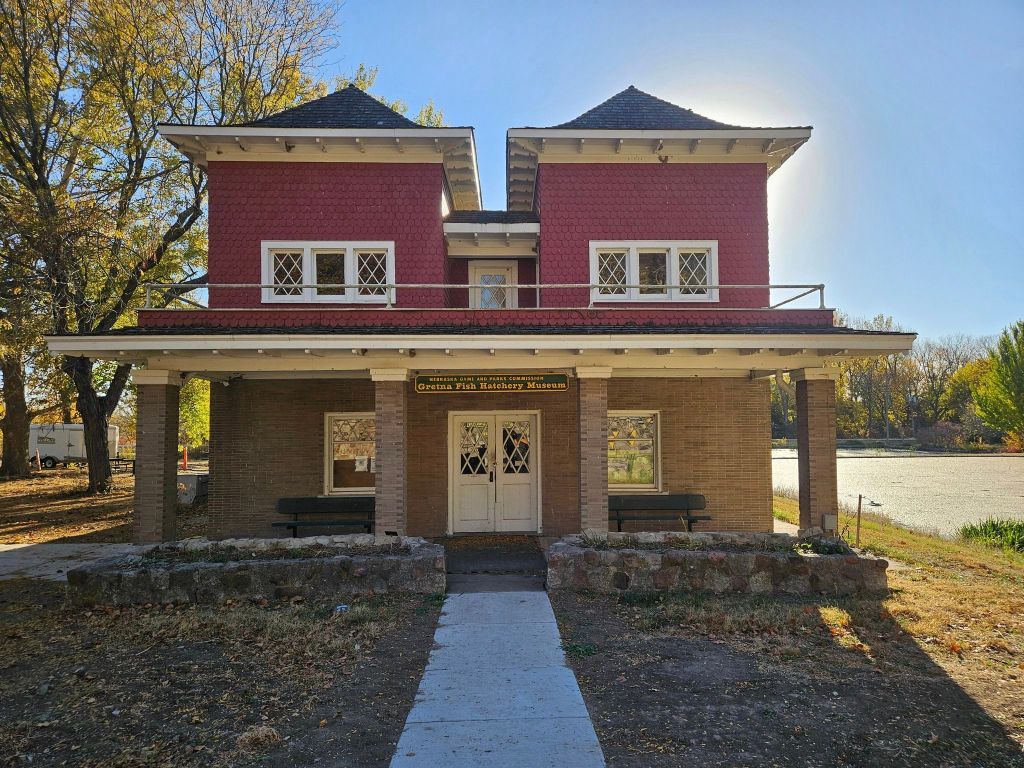 Located on the north side of the Platte River, Schramm Park is home to the oldest state fish hatchery in Nebraska which operated for nearly 100 years. The Gretna Fish Hatchery was established in 1882 after the purchase of 54 acres of land. The site was selected due to the spring water that supplies the Canyon Ponds. Fish such as trout, carp, and channel catfish were hatched to stock the waters of Nebraska. The first hatch house created by its original owners, Mr. Romine and Mr. Decker was replaced in 1889. It was replaced again in 1914 with the current building as the former was no longer adequte.