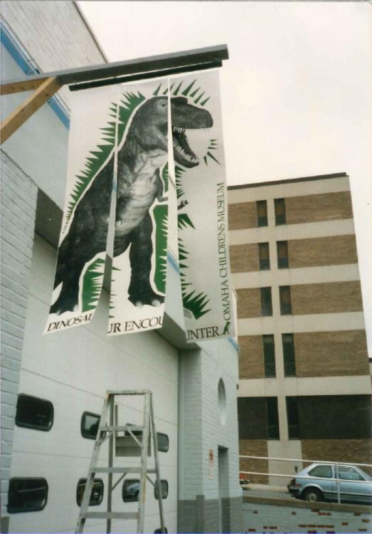 In 1989 the museum moved to the former Team One Ford dealership building at 500 S 20th Street. Built in the mid-1940s the curved wall structure was designed in a streamlined, moderne style. The move was intended to be temporary, allowing the museum to accommodate the large “Dinosaur Encounter” exhibit. It soon became obvious that the building should be its permanent home as it met all of its criteria which included a high visibility, downtown location with off-street parking and room for expansion.