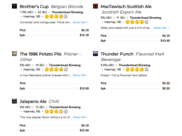 Thunderhead continues to maintain its presence in Kearney where it was born 25 years ago. In addition to its nearly two dozen beers, they serve pizzas made in the ovens upstairs. It has become a hub and gathering place for the staff and students at the University of Nebraska at Kearney as well as families in the area. For those in the Omaha area, fear not as you can still find many of its beers in grocery stores and local bars.