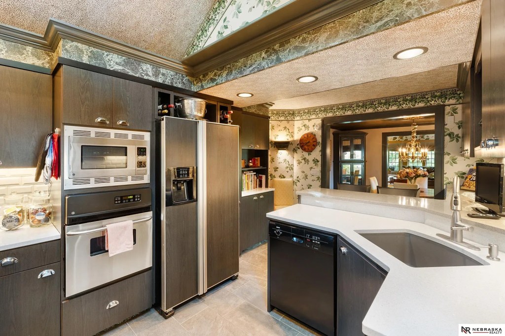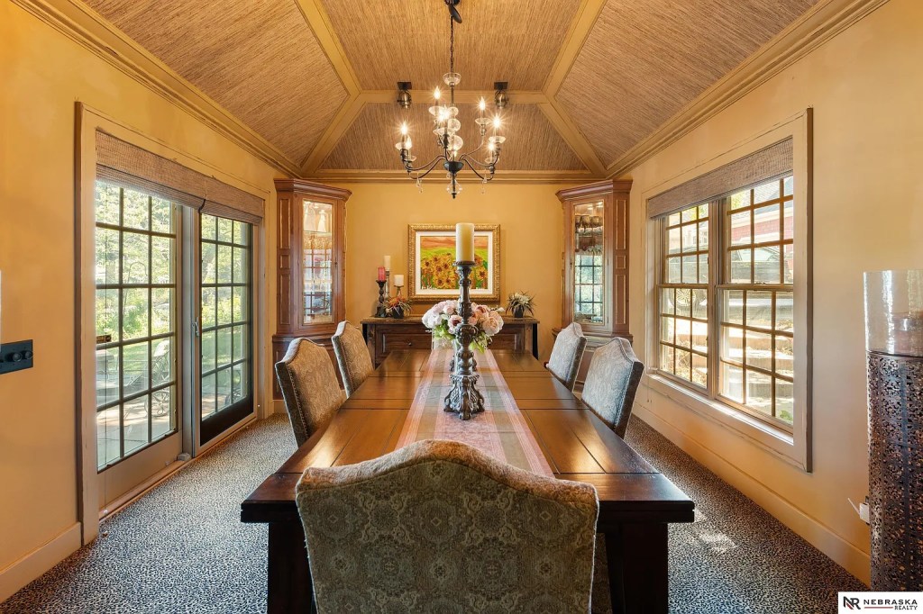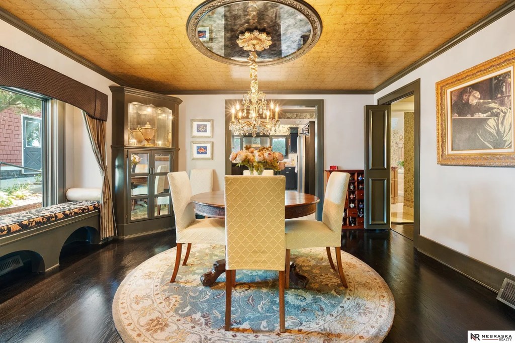 Richard Klaas of Omaha Interiors & Design became its third owner that year. He and his partner are likely responsible for much of its current aesthetic. They added on to the house and added a large living room with fireplace, formal dining room along with a breakfast nook, kitchen and a large bathroom with a fireplace of its own. After 14 years, he sold the house to Ramona Hunt.