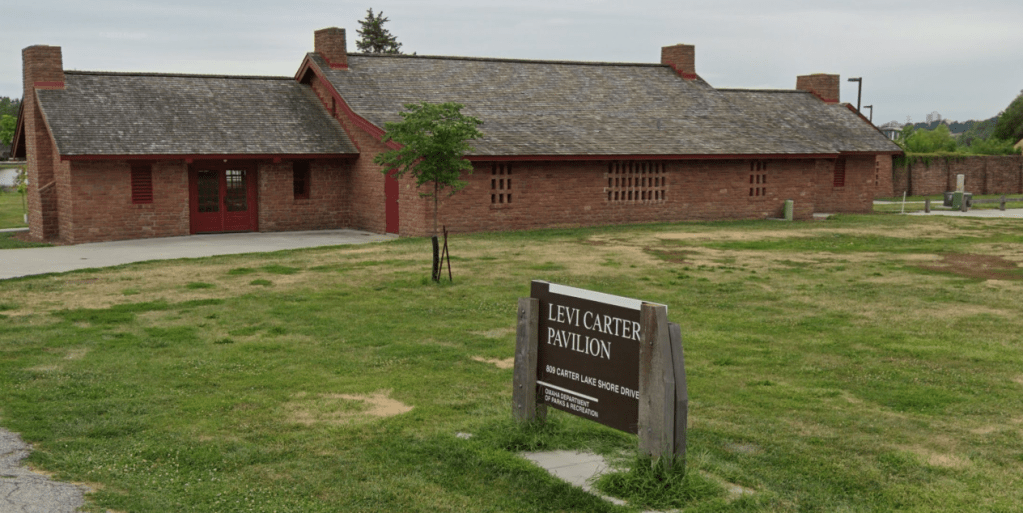The area that is now the park was once located on the west bank of the Missouri River until 1877. That year an ice jam formed at Saratoga Bend and led to a major flood that shifted the course of the river about a mile southeast. When the water retreated, it left a crescent shaped body of water. The land inside this body of water would become Carter Lake while the land on the outside surrounding the lake would become Levi Carter Park. You can read my post on East Omaha for more information on this subject.
