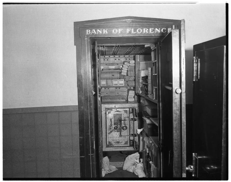 To that end, the land for the Bank of Florence was acquired and a vault was ordered. Construction started in 1855 when the vault arrived from Pennsylvania. When it was finished, the two-story brick structure was the strongest structure in the entire territory. Construction was completed by the end of the year and the bank opened its doors in 1856.