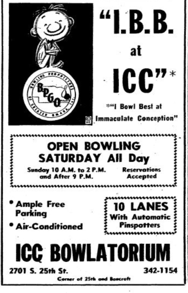 Located at 25th and Bancroft Streets, the Immaculate Conception bowling alley was just one of 27 located in Omaha at its peak. Combined they provided bowlers with more than 500 lanes to a city that was once referred to as the capital of bowling. The sport was so popular that all three television stations aired weekly bowling shows. Omaha even got a primetime spot on NBC when the Civic Auditorium host the national all-star professional tournament in 1960.