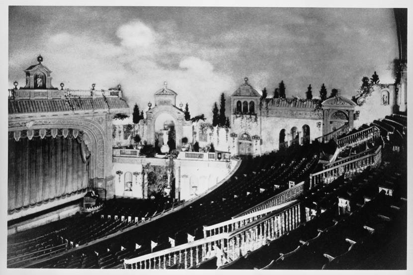 The interior of the building was just as impressive with its tapestries, oriental rugs, friezes, intricate mosaic tile flooring, fountains and its Mediterranean-style murals. It was equally impressive inside with its perfect acoustics, balconies and the impressive ceiling with electric stars and clouds. The theater with its 2,776 seats also had a full orchestra to support song and dance acts, vaudeville skits and feature films.
