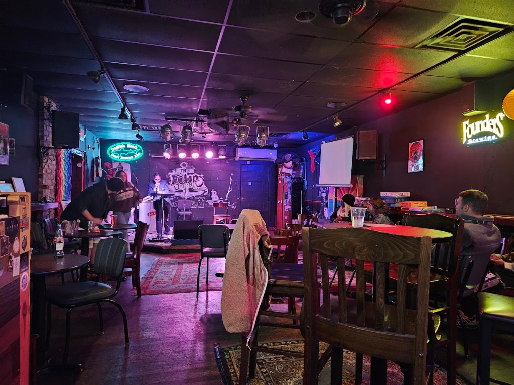 As the Down Under Lounge, the main floor of the small building offers a unique and intimate space to enjoy live music. With its interior walls painted black, the small space has a few rugs in front of the Side Door Stage as well as high and low top round cocktail tables and a dozen or so seats at the bar. It’s easy to see why this friendly and accepting yet nondescript bar is a popular gathering spot for not only live music but karaoke, open mics, movies and other events. The space also includes an outdoor patio on the west side of the building and a basement speakeasy that contains half of the original bar from the old location as well as a grand piano. In 2024 Omaha Magazine named The Down Under Lounge one of the best neighborhood bars.