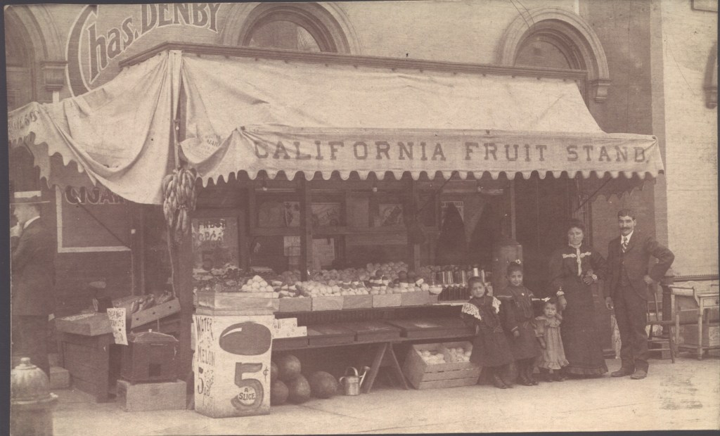 Born in 1895 Ben Eisenberg immigrated from Russia at the age of just 19. First settling in New York City, he married Elsie Silverman in 1919. By 1921 the couple made their home in Omaha where he learned how to peddle fruit from his father-in-law. After acquiring a horse and wagon, the shrewd businessman quickly established a neighborhood route selling his fruit and vegetables as well as a commercial route selling to restaurants and grocery stores. Starting at a young age, both of his sons, Hymie and George, worked for the company selling onions and potatoes on the sidewalks of the market. All three of the Eisenberg’s could be heard shouting “Get your watermelon – red, ripe and sweet watermelon”.