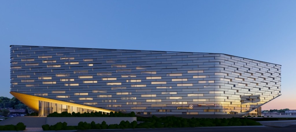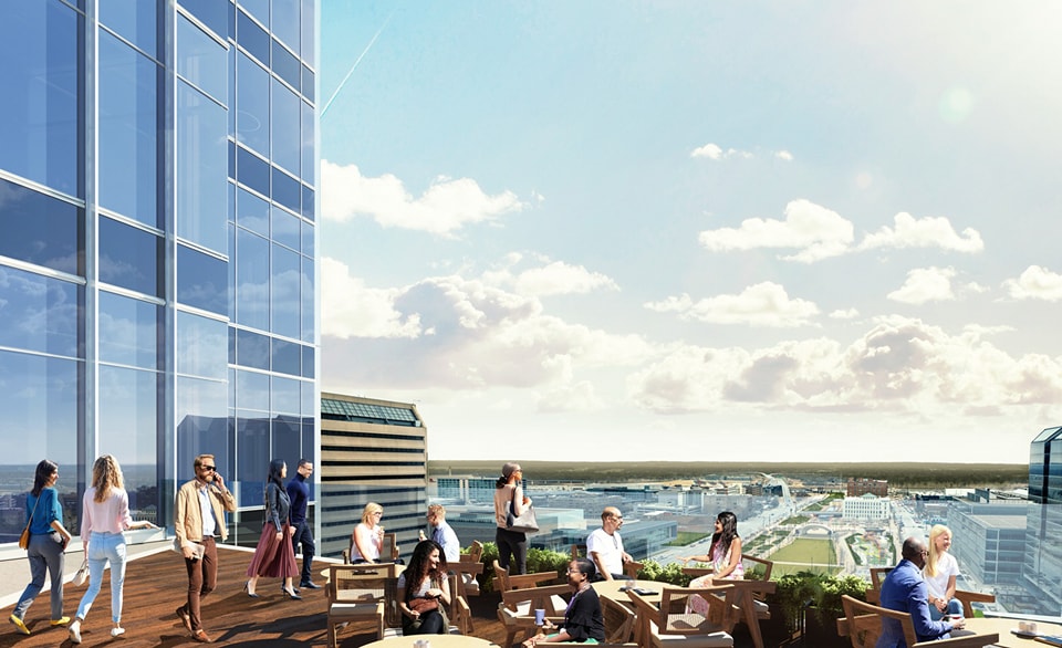 At street-level there will be a lobby with conference space and an experience center spotlighting the company’s history and impact. Floors 16-20 which are referred to as a sky lobby which separates the parking garage from the offices and will include food options, fitness center, conference/meeting rooms and landscaped outdoor spaces. The top floor will feature conference facilities and views from a two-story atrium. The building will contain 2,200 parking stalls that will be available to the public in the evenings and weekends.