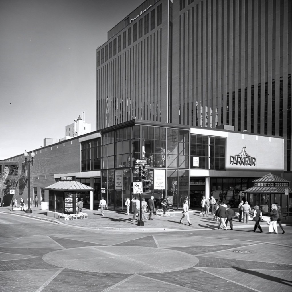Parkfair Mall was an attempt to revitalize the 16th Street corridor which had a long history of retail stores including Brandeis, the flagship location of the department store chain. The three-story mall was constructed in 1983 on the western side of the Central Park Plaza towers between Douglas and Farnam Streets. The city went so far as to install brick sidewalks along the mall. The intent was to draw shoppers back downtown and to compete with enclosed shopping centers to the west including The Center, Crossroads and Westroads among others.