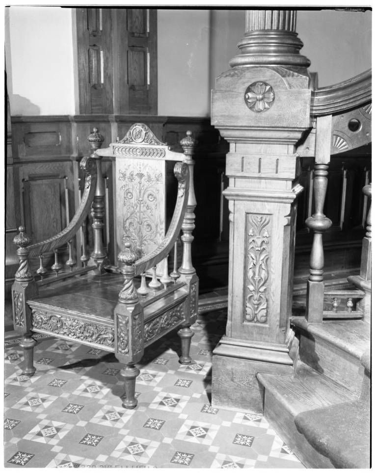 1963 Durham Museum photos looking at the second floor woodwork in the Mercer Mansion.