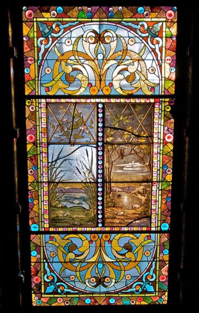 The first floor included a library, den, dining room, breakfast room, music room, drawing room, kitchen, servants hall and a large entrance hall. The second floor included nine bedrooms. In addition to a romantic cupola, the third floor had a billiards room, five sleeping rooms.
