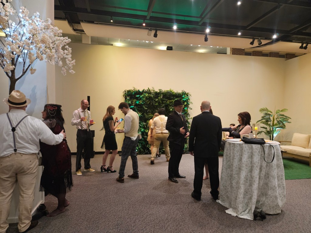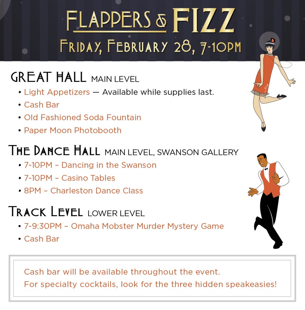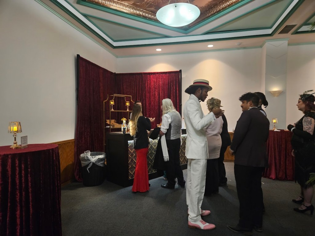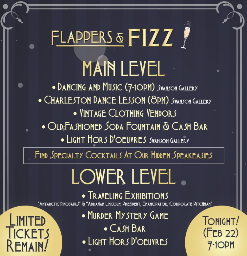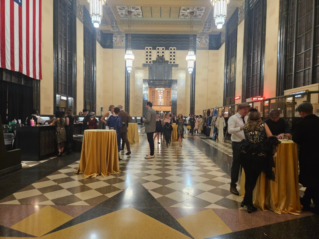 Flappers and Fizz is a roaring 1920s themed party that the Durham Museum has hosts annually. The Art Deco styled former Union Station train is the ideal place for such an event and offers lots of space to spread out and mingle. Inside there were three speakeasies hidden throughout the building each with a signature cocktail, two cash bars, hors d’oeuvres and other snacks available at the soda fountain, music, dancing and even a murder mystery to solve.