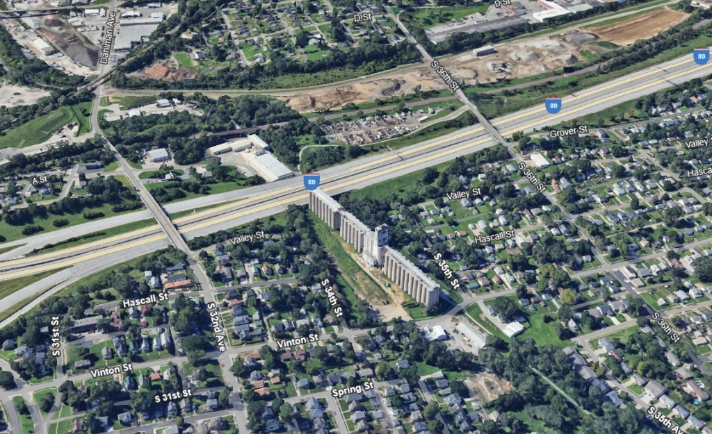 Some of the abandoned grain silos just north of Interstate 80 may finally be coming down! Built in 1952, I believe they stopped being used by 2000 if not earlier. In recent years, they have been a target for trespassers as well as graffiti and vandalism. Six kids were even stuck inside last year requiring assistance from the first responders. Attempts to make them more attractive to those walking or biking along the South Omaha Trail have resulted in murals being painted on them.