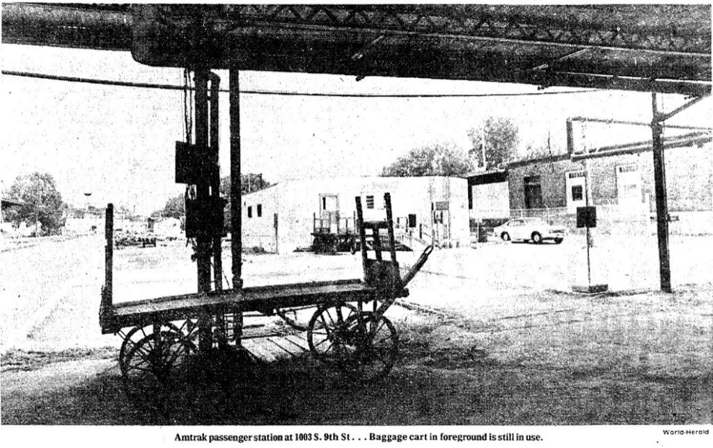 1979 Omaha World-Herald photo of the temporary train station which consisted of three connected trailers.