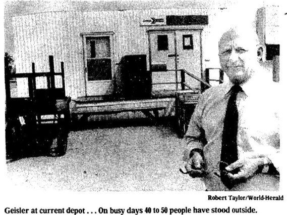 1983 Omaha World-Herald photo of the temporary train station which consisted of three connected trailers.