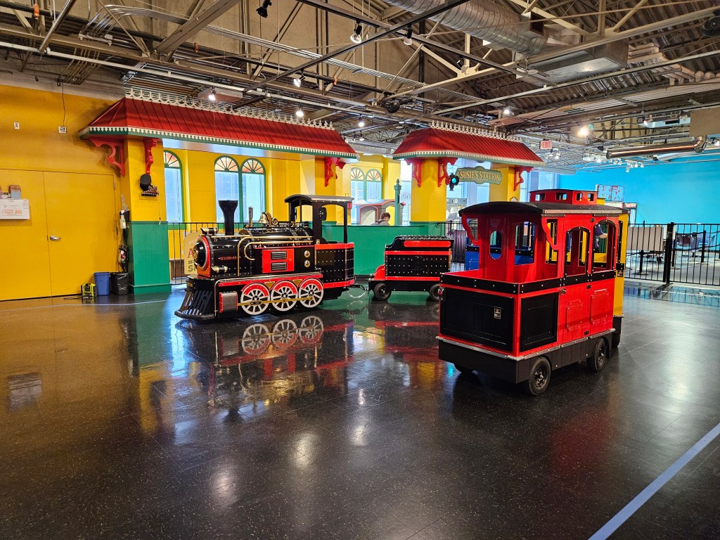 In addition it has a carousel and train which require tickets to ride. It’s also hosts camps and is available for birthday parties. Food and drinks are available at the Rainbow Cafe.