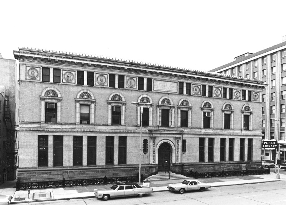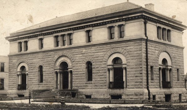 The building was Thomas Kimball’s first major project in Omaha. Designed in the Second Renaissance Revival style, he hired John Harte as the contractor. Among its key features is the elaborate terra cotta detailing and the lintel just below the cornice displays the names of important literary figures. He said that “he attempted to build a square, honest, sensible building, adapted inside and out to the purpose to which it is to be devoted.” When it was built it was said to be reminiscent of the Boston Public Library