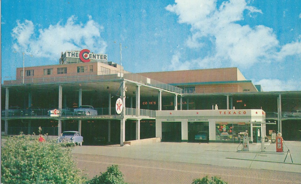 Among the mall’s other charter tenants were Thom McAn Shoes, Mode O’Day Frock Shop, The Center Bank, National Shirt Shop, Big Chief supermarket, Hesteds 5 & 10 and Carl S. Baum Druggists. Other tenants over the years included Kimball Laundry, Reed’s Ice Cream, Omar Baking retail store, Lollipop Lane, Warner’s Photography Center, Center Coffee Shop, Calandra’s Camera Store, Spectator women’s clothing store and Lerner’s Vogue among many others. Surrounded by the parking garage on the northwest corner was a Texaco service station.