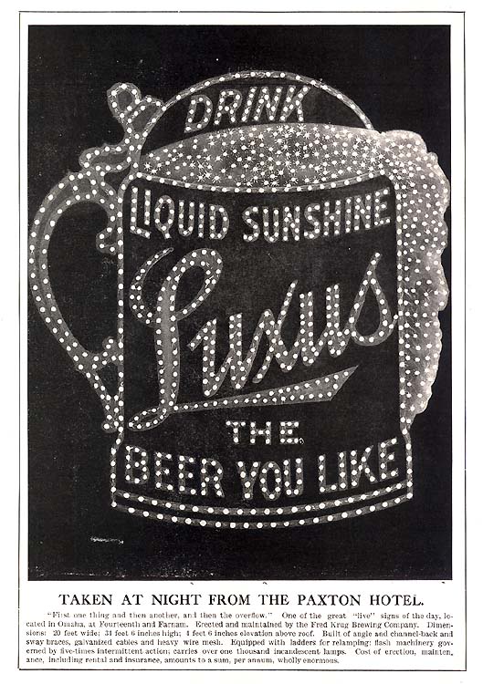 Despite those events, Krug Brewing Company, didn’t miss a beat and remained on top of the competition. By 1917, however, Nebraska passed prohibition thereby halting legal beer production across the state. The company continued to operate for a time making a soft drink version of its popular Luxus brand of beer.